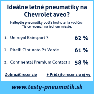 Ak máte vlastný web s tematikou automobilov, alebo ste dodávateľom pneumatík, môžete na svoj web umiestniť našu plaketu s hodnotením pneumatík vhodných pre vozidlo Chevrolet aveo: test pneumatík na Chevrolet aveo [png] ![]()