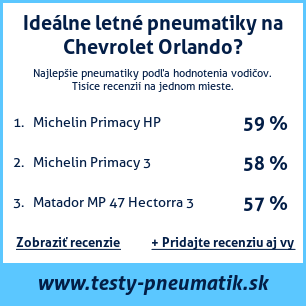 Ak máte vlastný web s tematikou automobilov, alebo ste dodávateľom pneumatík, môžete na svoj web umiestniť našu plaketu s hodnotením pneumatík vhodných pre vozidlo Chevrolet Orlando: test pneumatík na Chevrolet Orlando [png] ![]()