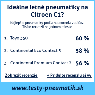 Ak máte vlastný web s tematikou automobilov, alebo ste dodávateľom pneumatík, môžete na svoj web umiestniť našu plaketu s hodnotením pneumatík vhodných pre vozidlo Citroen C1: test pneumatík na Citroen C1 [png] ![]()