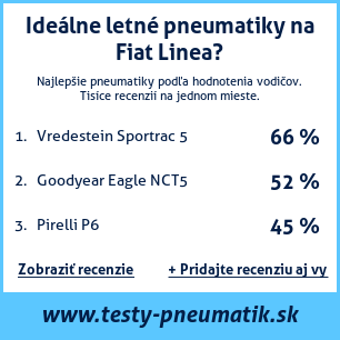 Ak máte vlastný web s tematikou automobilov, alebo ste dodávateľom pneumatík, môžete na svoj web umiestniť našu plaketu s hodnotením pneumatík vhodných pre vozidlo Fiat Linea: test pneumatík na Fiat Linea [png] ![]()