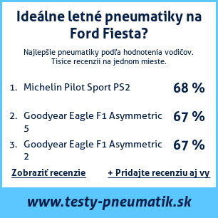 Ak máte vlastný web s tematikou automobilov, alebo ste dodávateľom pneumatík, môžete na svoj web umiestniť našu plaketu s hodnotením pneumatík vhodných pre vozidlo Ford Fiesta: test pneumatík na Ford Fiesta [png] ![]()