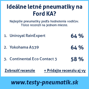 Ak máte vlastný web s tematikou automobilov, alebo ste dodávateľom pneumatík, môžete na svoj web umiestniť našu plaketu s hodnotením pneumatík vhodných pre vozidlo Ford KA: test pneumatík na Ford KA [png] ![]()
