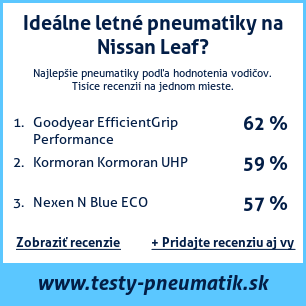 Ak máte vlastný web s tematikou automobilov, alebo ste dodávateľom pneumatík, môžete na svoj web umiestniť našu plaketu s hodnotením pneumatík vhodných pre vozidlo Nissan Leaf: test pneumatík na Nissan Leaf [png] ![]()