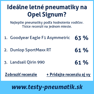 Ak máte vlastný web s tematikou automobilov, alebo ste dodávateľom pneumatík, môžete na svoj web umiestniť našu plaketu s hodnotením pneumatík vhodných pre vozidlo Opel Signum: test pneumatík na Opel Signum [png] ![]()