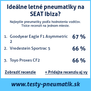 Ak máte vlastný web s tematikou automobilov, alebo ste dodávateľom pneumatík, môžete na svoj web umiestniť našu plaketu s hodnotením pneumatík vhodných pre vozidlo SEAT Ibiza: test pneumatík na SEAT Ibiza [png] ![]()