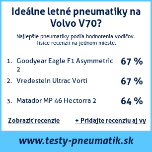 Ak máte vlastný web s tematikou automobilov, alebo ste dodávateľom pneumatík, môžete na svoj web umiestniť našu plaketu s hodnotením pneumatík vhodných pre vozidlo Volvo V70: test pneumatík na Volvo V70 [png] ![]()