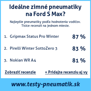 Ak máte vlastný web s tematikou automobilov, alebo ste dodávateľom pneumatík, môžete na svoj web umiestniť našu plaketu s hodnotením pneumatík vhodných pre vozidlo Ford S Max: test pneumatík na Ford S Max [png] ![]()