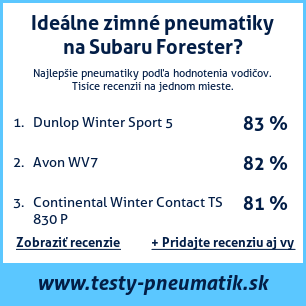 Ak máte vlastný web s tematikou automobilov, alebo ste dodávateľom pneumatík, môžete na svoj web umiestniť našu plaketu s hodnotením pneumatík vhodných pre vozidlo Subaru Forester: test pneumatík na Subaru Forester [png] ![]()