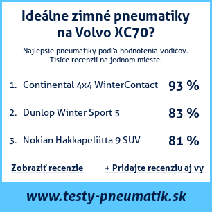 Ak máte vlastný web s tematikou automobilov, alebo ste dodávateľom pneumatík, môžete na svoj web umiestniť našu plaketu s hodnotením pneumatík vhodných pre vozidlo Volvo XC70: test pneumatík na Volvo XC70 [png] ![]()